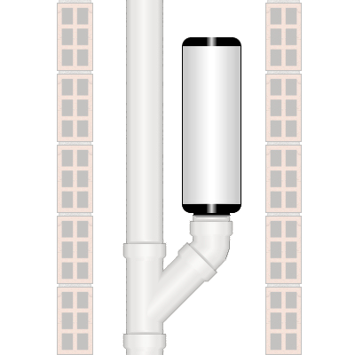 Atenuador de pressió d'aire positiva de PVC, model Studor P.A.P.A. "JIMTEN-ALIAXIS", de 110 mm de diàmetre i 3785 litres de capacitat, apte per a temperatures des de -20 fins 60°C, classificació Al segons UNE-EN 12380, amb junta elàstica.