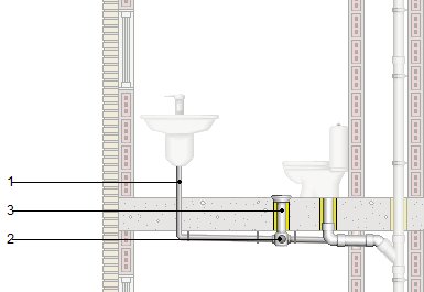 Xarxa interior d'evacuació, per bany petit amb dotació per: vàter, lavabo senzill, realitzada amb tub de PVC, sèrie B per la xarxa de desguassos. | ||